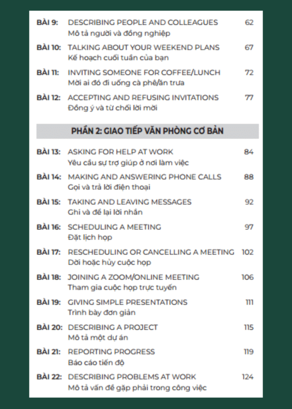 Tổng cộng: 144 bài học thực chiến – bao quát đầy đủ mọi tình huống mà một người đi làm cần để sử dụng tiếng Anh như công cụ phát triển sự nghiệp.