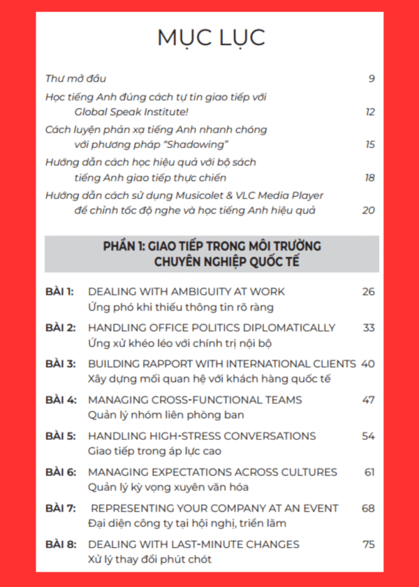 Cấp độ Trung cấp (48 bài học): Mở rộng giao tiếp văn phòng, rèn luyện kỹ năng thuyết trình, đàm phán, viết email chuyên nghiệp và giải quyết tình huống với đồng nghiệp, khách hàng.