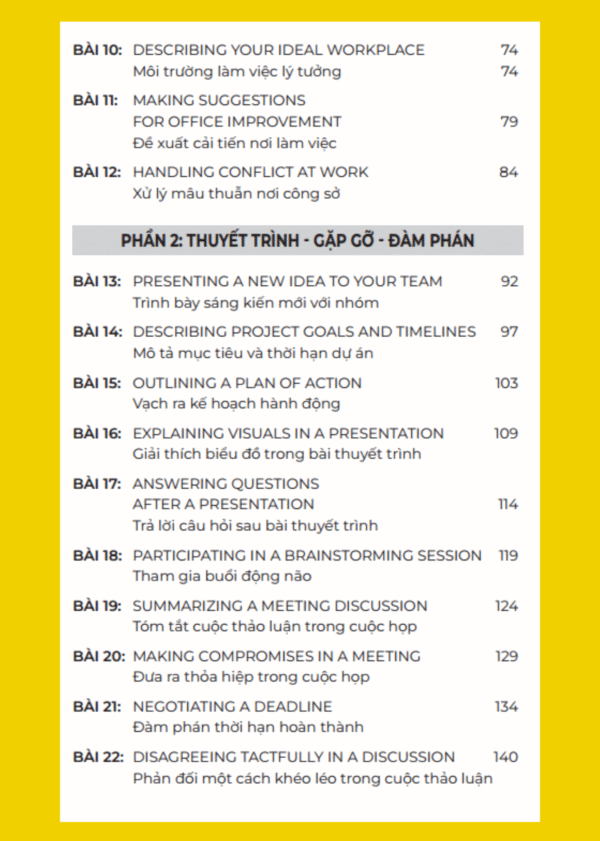 Mỗi phần đều được biên soạn xoay quanh tình huống thật trong công việc, để bạn học và áp dụng ngay.